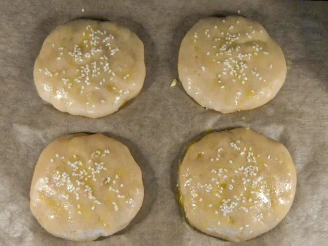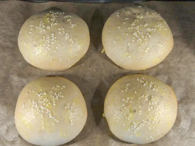 - setzt die Burger Buns mit 2-3 cm Abstand auf das Backblech – sie gehen sehr stark auf und könnten sonst zusammenwachsen.