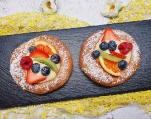 Bauernkrapfen aus dem Backofen mit Fruchtaufstrich, Proteindessert und Obst. Pro Stück ohne Deko NUR [...]