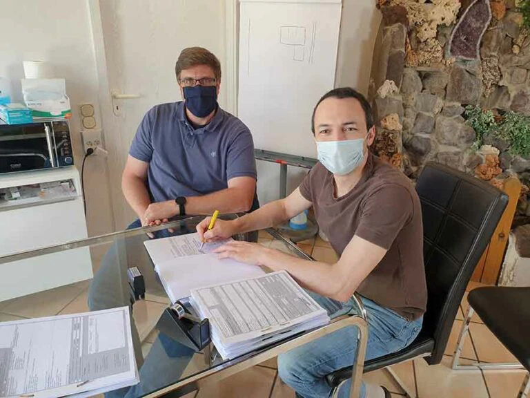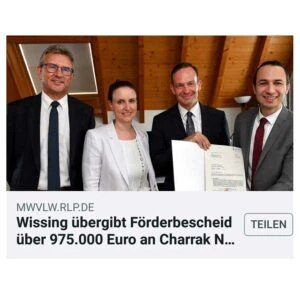 Nach erfolgreicher Präsentation unseres Vorhabens bei der Gemeinde Sembach konnten wir die örtliche Sparkasse Kaiserslautern für unser Projekt als Finanzierungspartner gewinnen und bekamen den Förderbescheid von Dr. Volker Wissing, dem (damals noch) Wirtschaftsminister von Rheinland-Pfalz, persönlich überreicht. Hier könnt ihr unseren damaligen Beitrag dazu lesen: