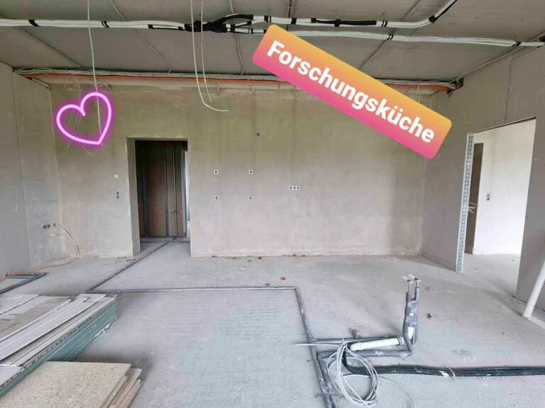 Im Hauptgebäude gab es 120 qm für die Produktion, im Nebengebäude nochmal 80 qm als Lager. Die Wohnung oberhalb der Produktionshalle war auch sofort bezugsfertig und hatte sogar eine recht nette Küche – auch wenn sie als Forschungsküche eigentlich viel zu klein war. (Immerhin war sie etwas größer als die vorige Küche.)