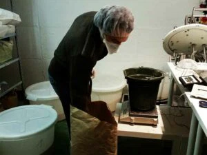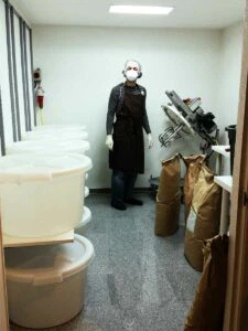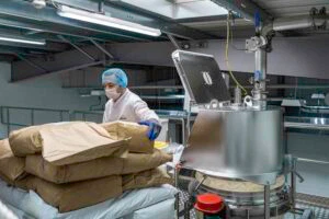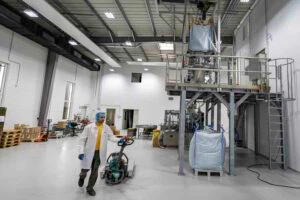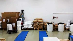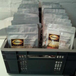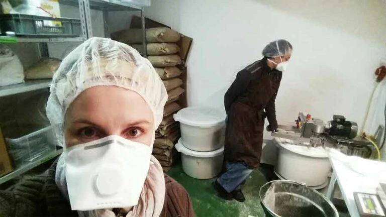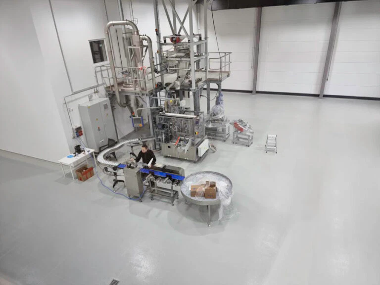 Die ersten Rohstoffsäcke wurden angeliefert, der Produktionsraum war fertig aufgebaut und der Lebensmittelmischer instandgesetzt.