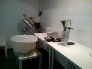 Wir waren also erstmal fast 8 Monate damit beschäftigt, die Infrastruktur aufzubauen. Dazu bauten wir den 20 qm Kellerraum unserer Mietwohnung in Ludwigshafen um und ließen ihn von der Lebensmittelbehörde abnehmen.