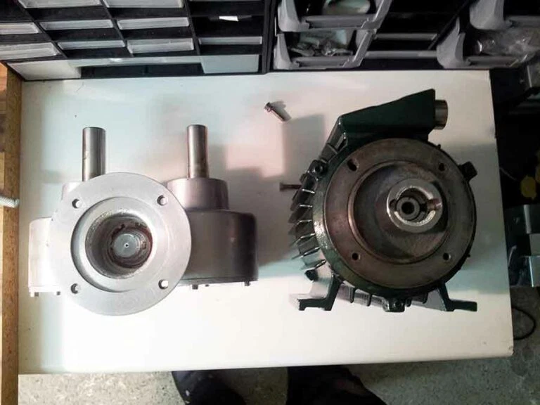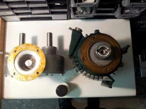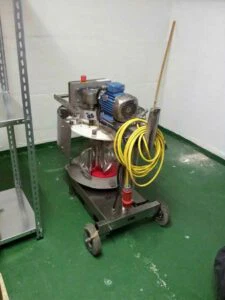Der Mischer kam in einem katastrophalen Zustand an und musste zuerst vollständig auseinandergebaut und gereinigt werden. Der Motor bekam eine frische Lackierung spendiert, das Getriebe frisches Fett mit Lebensmittelzulassung, die meisten Dichtungen wurden getauscht und neue Mischbehälter angeschafft.