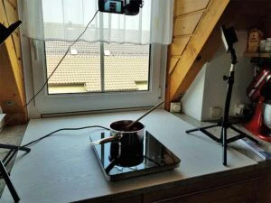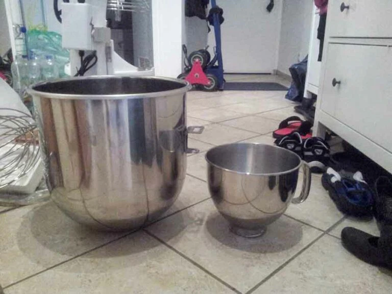 Die erste Testproduktion fand mit einer Art Monster-Kitchenaid in unserer Küche statt, da bei Beba zu dem Zeitpunkt noch der Lack trocknen musste.