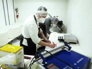 Etikettieren, Einschweißen und Abfüllen erfolgte natürlich in Handarbeit.
