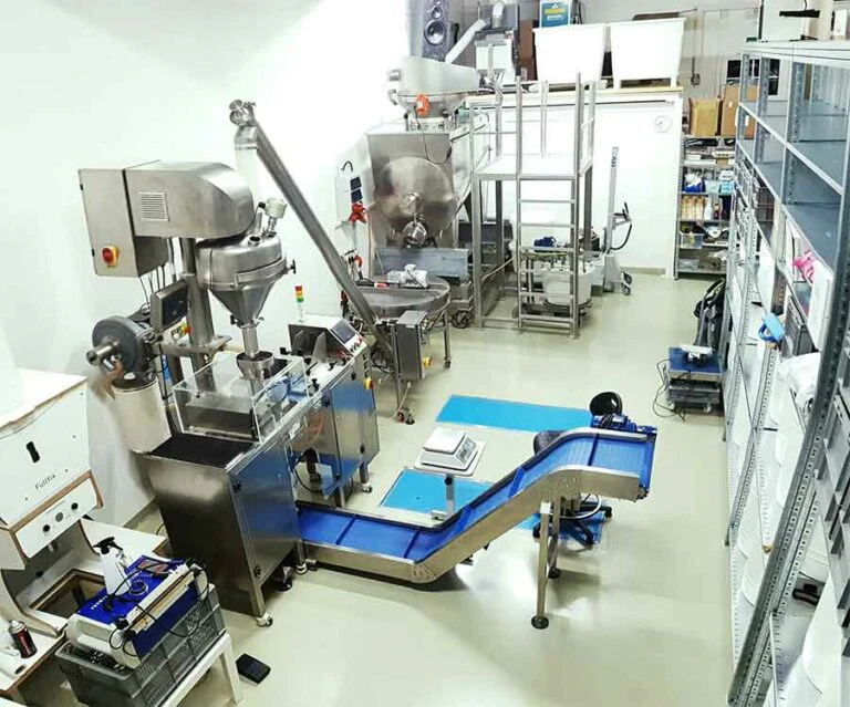 2.) Qualitätssicherung: durch die Erfahrungen, die wir in den letzten Monaten bei den ersten Produktionen und bei der Rohstoffbeschaffung sammeln konnten, hatten wir die wichtige Erkenntnis gewonnen, dass wir die Qualitätssicherung nicht aus der Hand geben wollten. Mit Nussmehlen zu arbeiten ist nämlich alles andere als unkompliziert. Zum einen können sich die Eigenschaften von Ernte zu Ernte stark unterscheiden, wodurch immer wieder kleine Optimierungen der Rezeptur nötig sind, um das perfekte Ergebnis zu erhalten. Zum anderen muss jede Charge nicht nur analysiert, sondern auch gründlich geprüft und verkostet werden. Einfach einkaufen und und in den Mischer kippen ist keine gute Idee, denn nichts ist schlimmer, als eine ganze Batch zu versauen, weil ein einzelner Rohstoff nicht schmeckte. Eine Laboranalyse ersetzt eben keinen Gourmet-Gaumen. Und das konnten wir von einem Lohnproduzenten einfach nicht erwarten.