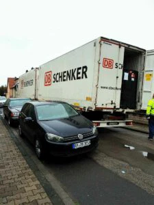 Wehe, wenn mal zwei oder sogar drei LKWs gleichzeitig kamen! 40-Tonner und Sattelzüge mussten mit viel Geschrei und Gewinke rein- und rausmanövriert werden. Wenn die Fahrer sich das nicht zutrauten, mussten wir auf der Hauptstraße entladen und die Paletten per Hubwagen auf dem Bürgersteig spazierenfahren. Wenn an dem Tag auch noch die Müllabfuhr kam, war Game-over.