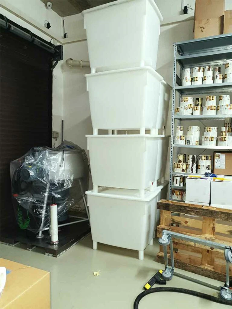 Der Kellerraum wurde zu eng, die Rohstoffe stapelten sich bis unter die Decke und jede Ecke in unserer Wohnung stand voll. Wir mieteten noch schnell eine Garage in der Nachbarschaft an, um neu eingetroffene Lieferungen erstmal abstellen zu können – und sie dann sackweise in den Keller zu schleppen.