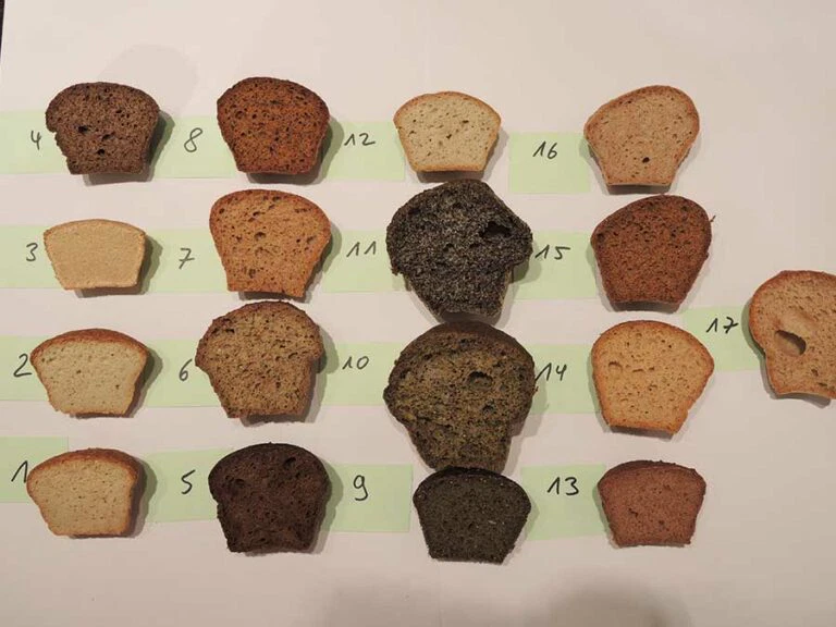 Jede Brotsorte wurde direkt nach der Produktion getestet, um sicherzustellen, dass wir auch alle Zutaten richtig eingewogen hatten und der Mischer richtig gemischt hatte.