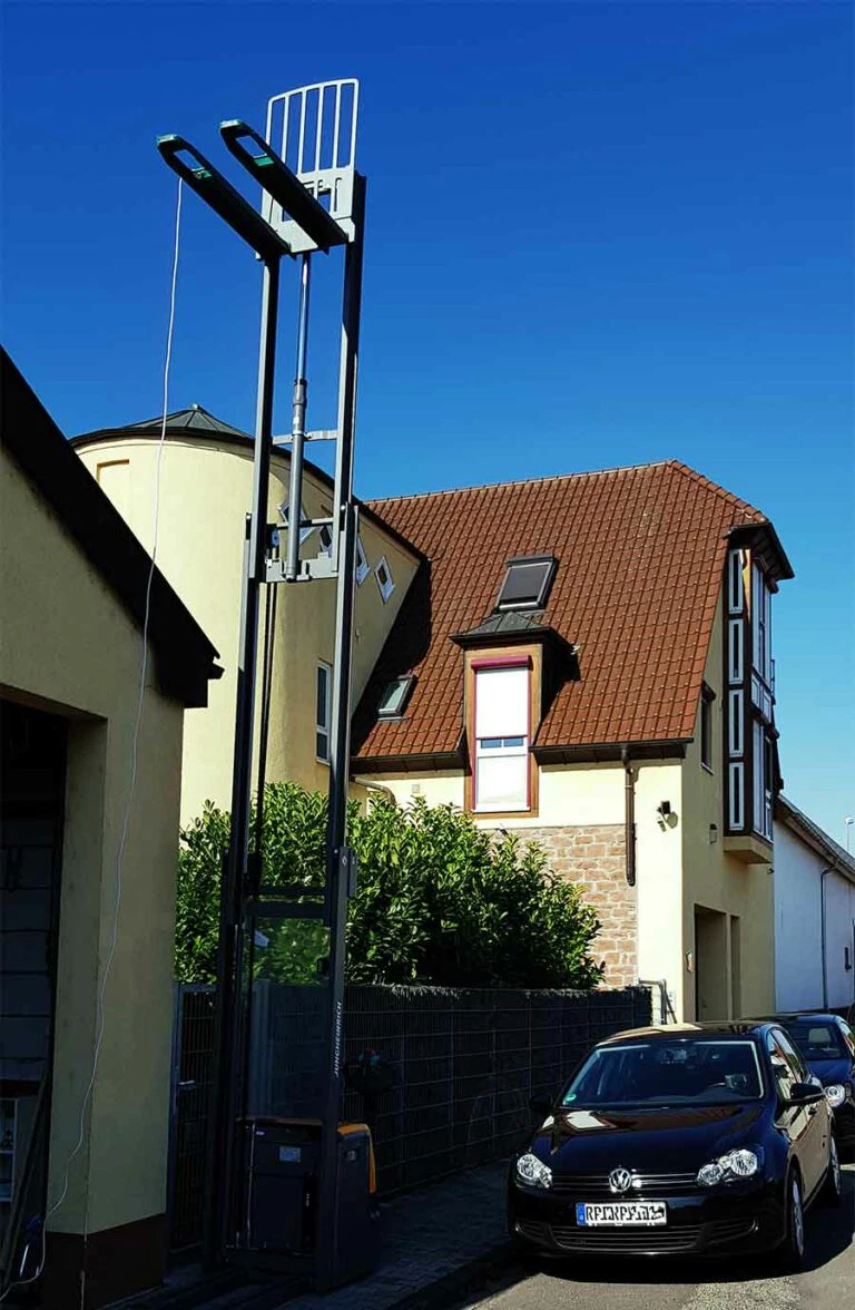 Wir hatten sogar schon einen neuen Hochhubwagen gekauft. Für die Bobenheimer Palettenregale war der viel zu hoch, aber die Regale in Sembach sollten 6 Meter hoch sein. Um den Neuzugang zu testen, mussten wir damit auf die Straße fahren. Was für ein Spaß!
