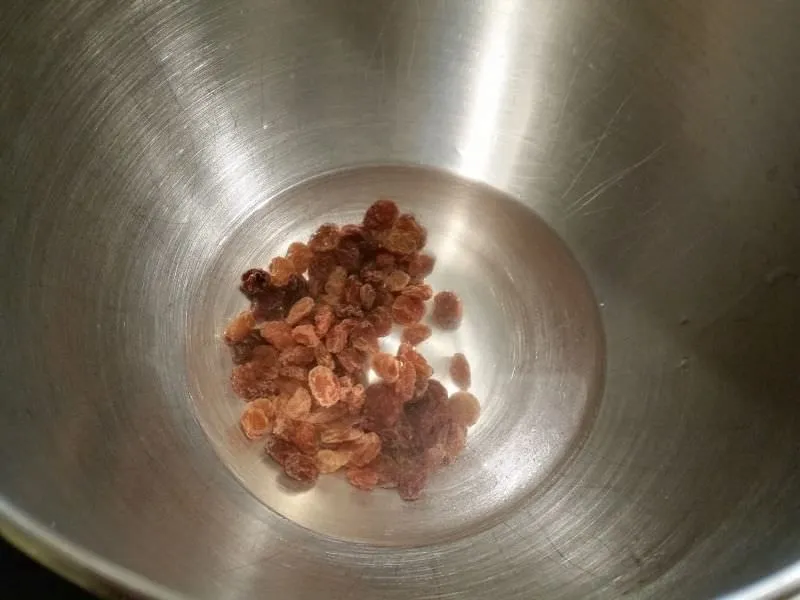 Um das unvergleichliche Hefearoma zu bekommen, muss die Hefe zunächst in 400 ml warmem Wasser aufgelöst und mit den natürlicherweise zuckerhaltigen Rosinen (oder wahlweise ½ TL Honig oder Zucker) aktiviert werden.