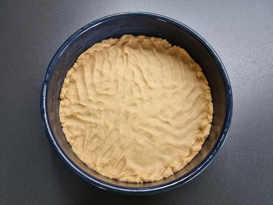 Das auf der Packung beschriebene Rezept für einen Boden aus Mandelteig haben wir speziell für den Käsekuchenzauber optimiert. Der Teig lässt sich sehr gut und vor allem auch schön dünn in der Backform ausrollen und ergibt einen leckeren, aber geschmacklich nicht allzu dominanten Käsekuchenboden.