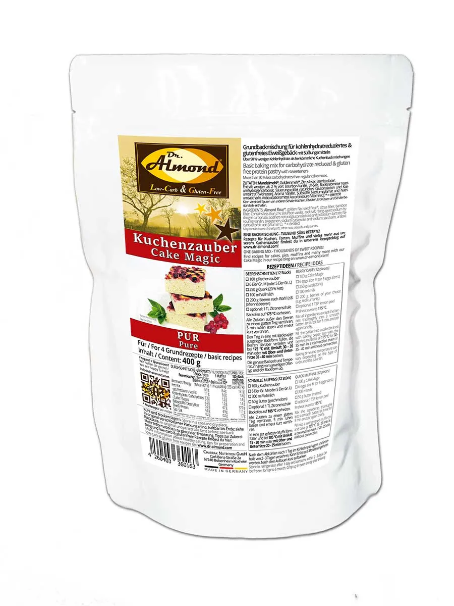 KUCHENZAUBER PUR Backmischung für Kuchen, Muffins und mehr – low-carb, glutenfrei, sojafrei, keto Kuchenmischung