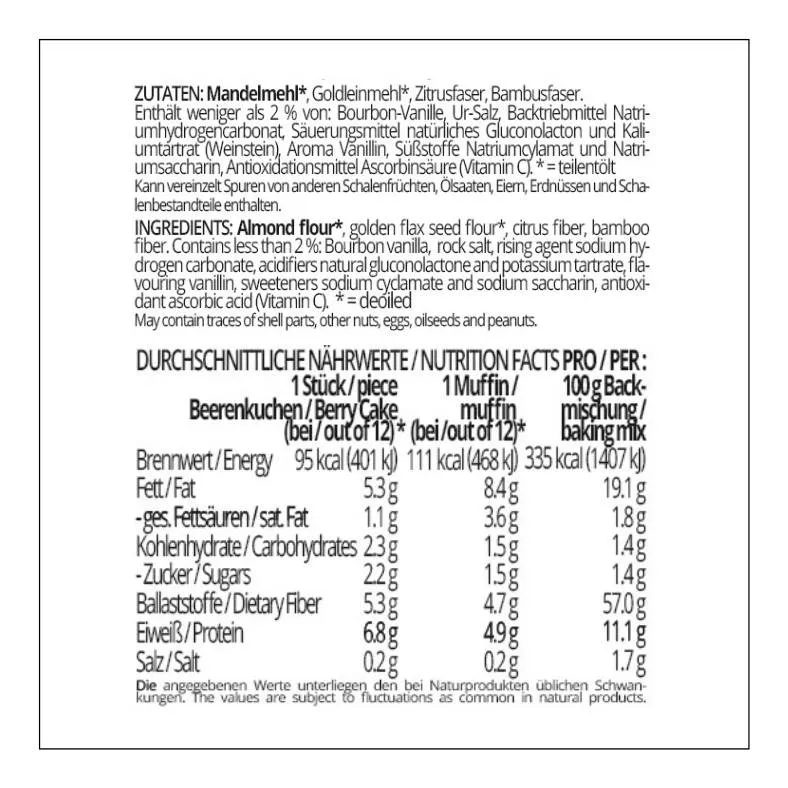 • 1.5 g Kohlenhydrate & 111 kcal pro Muffin (s. Rezept auf der Packung)