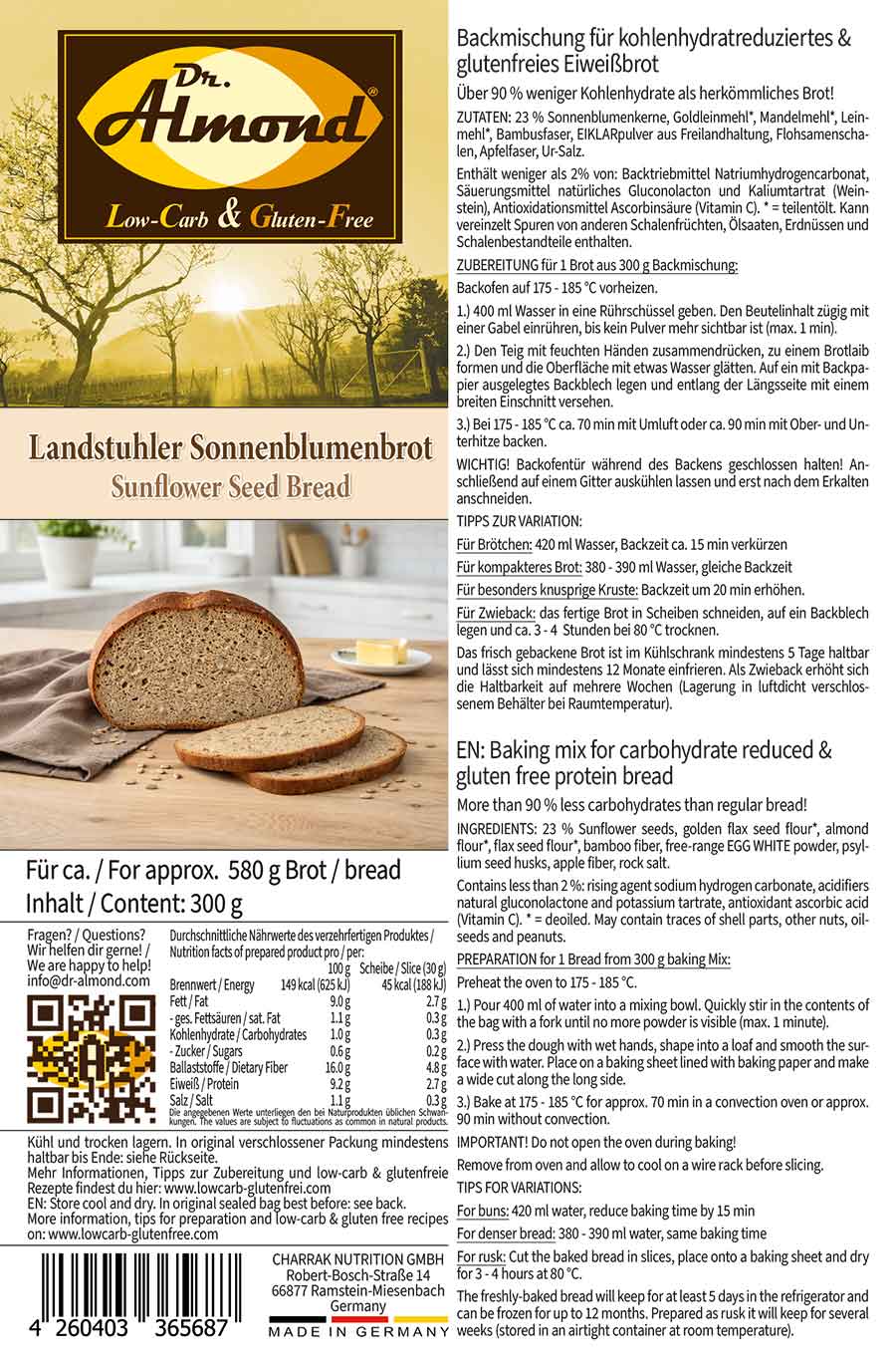 LANDSTUHLER SONNENBLUMENBROT Eiweißbrot Backmischung | low carb keto glutenfrei
