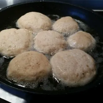ZUBEREITUNG (in der Pfanne oder Fritteuse):ZUBEREITUNG OHNE HEFE aus 200 g Backmischung: