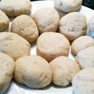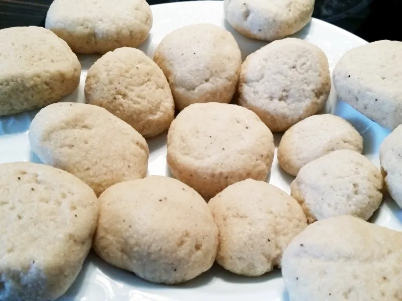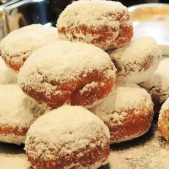 Mit Hefe noch authentischer und ausgebacken, in Zucker gewälzt lecker.