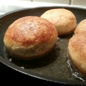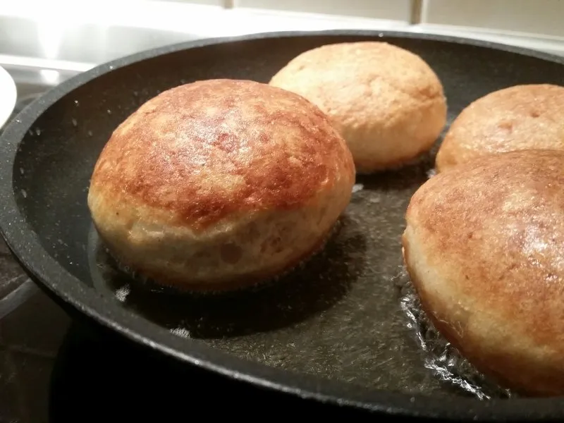 Ich habe das Rezept für den Backofen und die fettige Variante in der Pfanne ausprobiert, beide Ergebnisse waren lecker und fluffig. Mit Marmelade gefüllt herlich saftig, leider ist das Aprikosen Fix immer ausverkauft, wenn ich bestelle, dass wäre meine erste Wahl als Füllung gewesen.