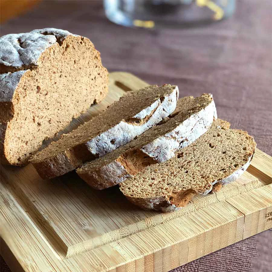 Ein kräftiges, nussig-herbes Brot mit aromatischem Walnussmehl und mildem Goldleinmehl, das geschmacklich an ein rustikales Roggenmischbrot* erinnert. Perfekt für eine herzhafte Brotzeit!
