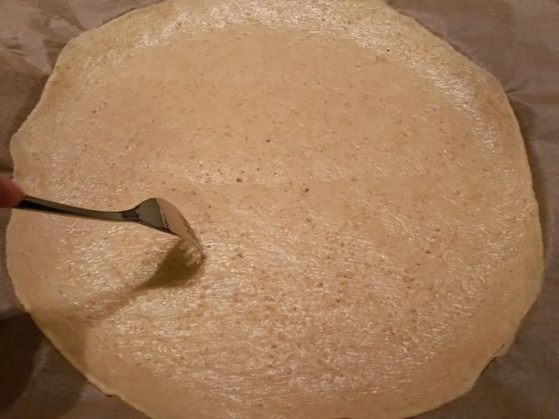 ist natürlich nicht so wie ein “normaler” Pizzateig, aber wenn man ihn länger im Ofen läßt, dann wird er schön knusprig. Vor allem eine Alternative zu Pizzateig mit Mehl.
