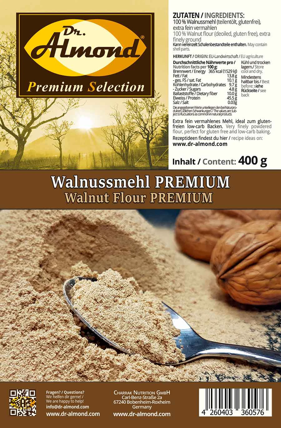 Hersteller: Charrak Nutrition GmbH, Robert-Bosch-Straße 14, 66877 Ramstein-Miesenbach | Kontakt: info@dr-almond.com | https://charraknutrition.com