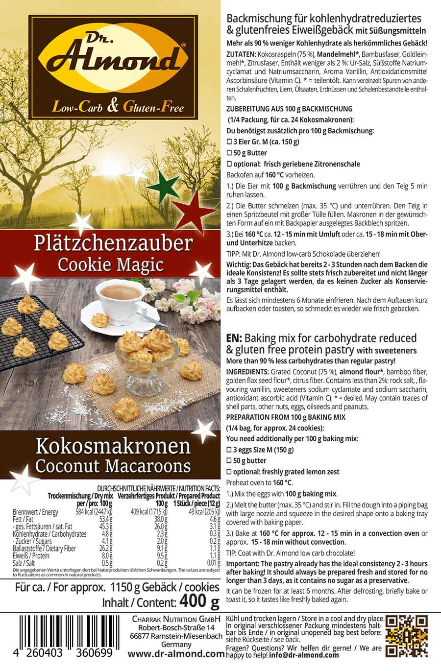 Plätzchenzauber Backmischung KOKOSMAKRONEN Weihnachtskekse low-carb keto glutenfrei OHNE Zuckerzusatz LIMITED EDITION