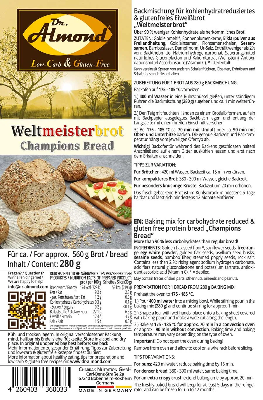 Hersteller: Charrak Nutrition GmbH, Robert-Bosch-Straße 14, 66877 Ramstein-Miesenbach | Kontakt: info@dr-almond.com | https://charraknutrition.com