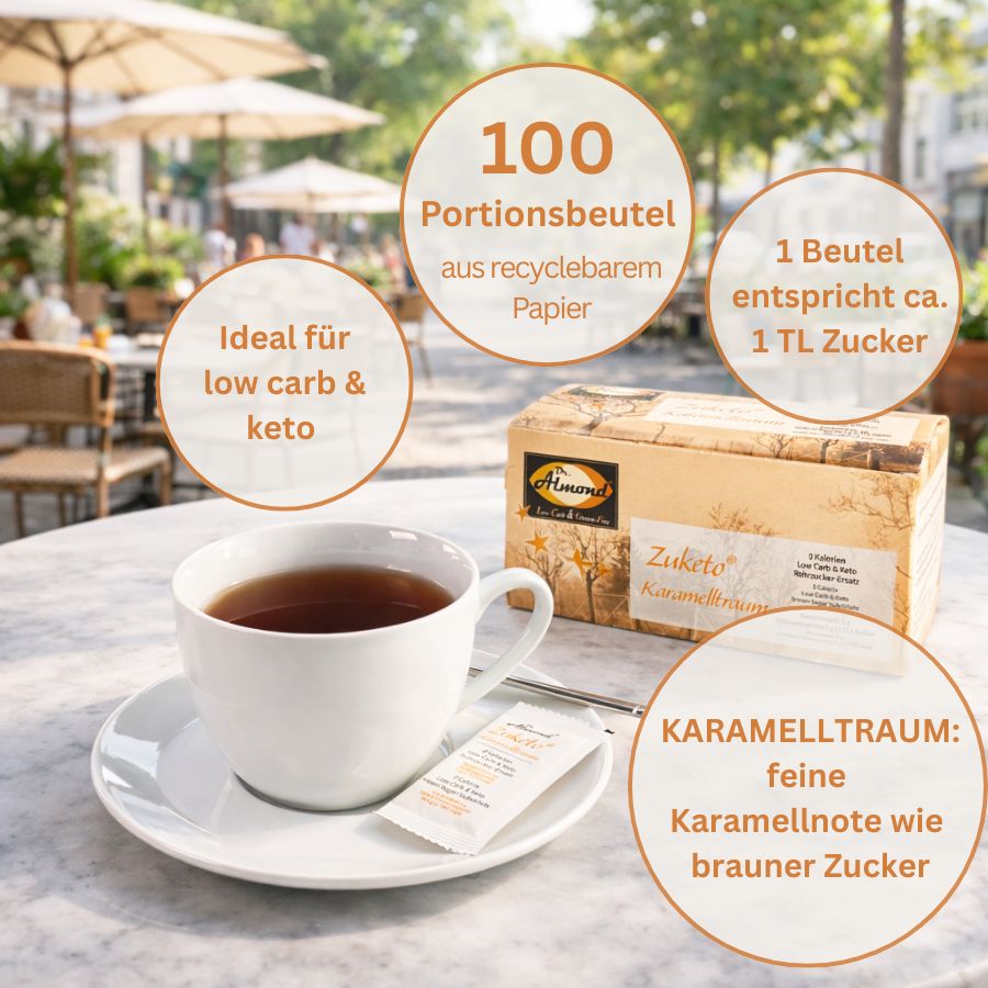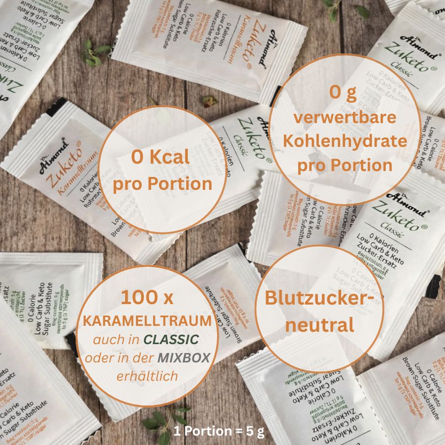 Schreibe die erste Bewertung für „Zuketo Karamelltraum Box | Portionsbeutel (100 x 5 g) | ohne Zuckerzusatz | keto“ Antwort abbrechen
