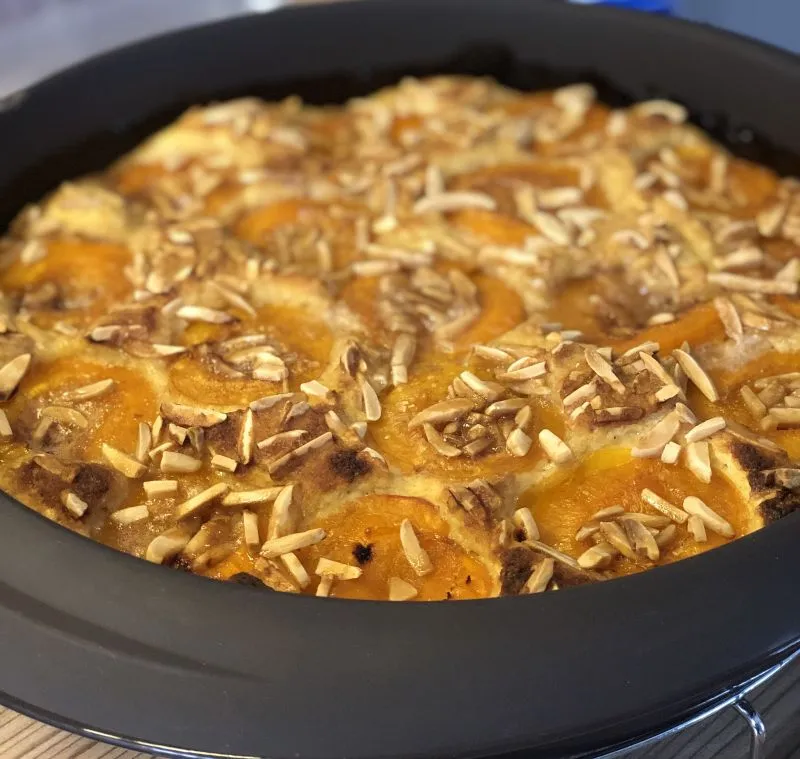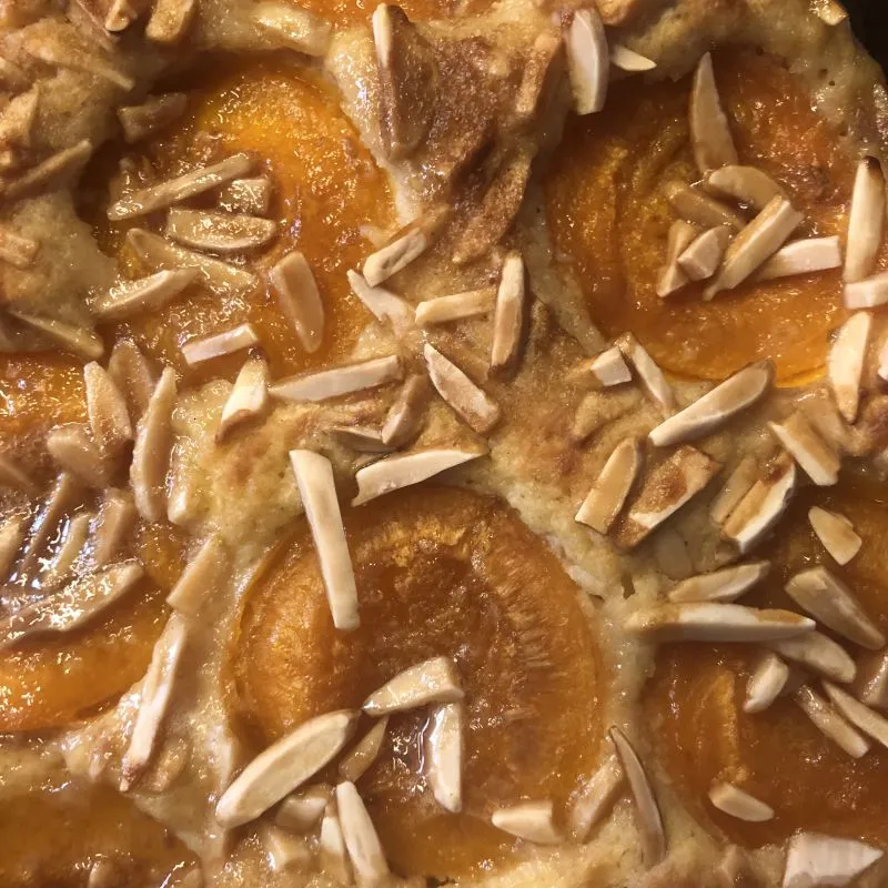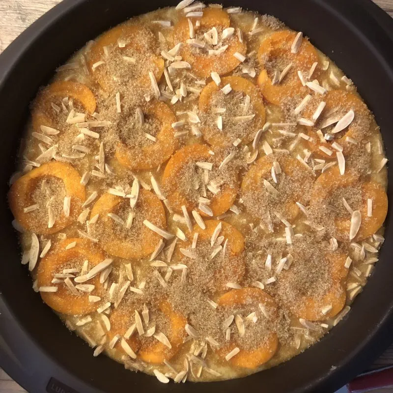 Rezept Aprikosen-Eierlikörkuchen mit Mandel-Karamell-Kruste lowcarb