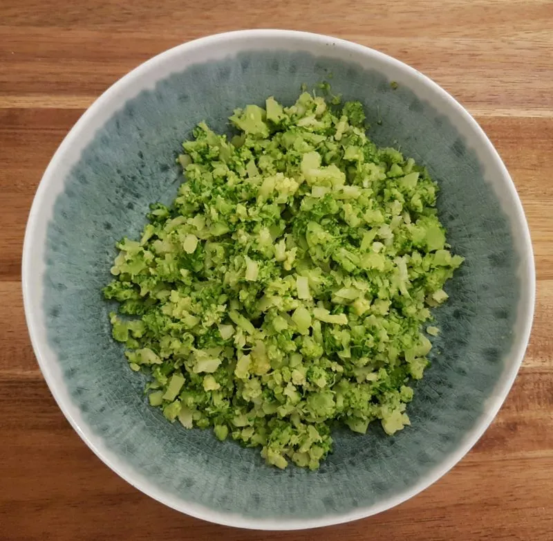 - Gedünsteten Blumenkohl und Broccoli zerkleinern und mit Butterschmalz(Ghee) anbraten, so dass keine Flüssigkeit mehr vom Dünsten vorhanden ist. In eine Schüssel geben.