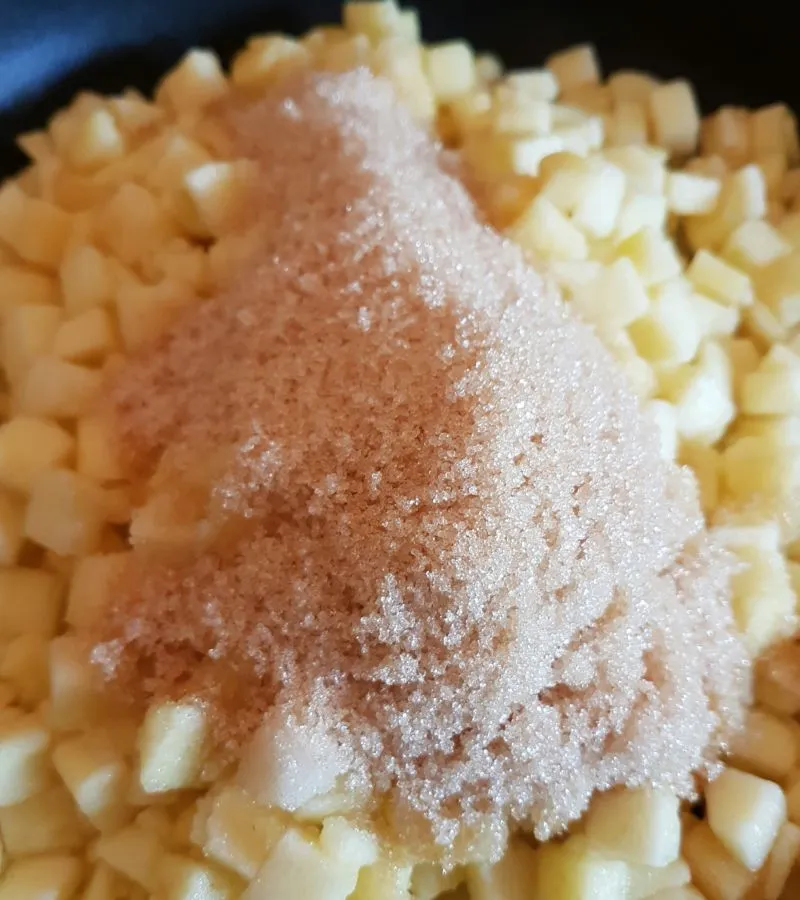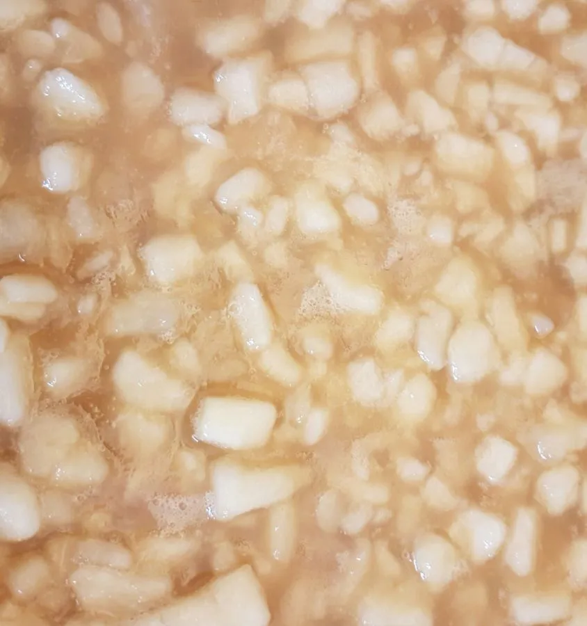• Karamelltraum in einem Topf schmelzen, die Birnenwürfel dazumengen und umgerührt unter Aufsicht auf hoher Flamme aufkochen lassen. Die Flamme etwas reduzieren und ein paar Minuten köcheln lassen.