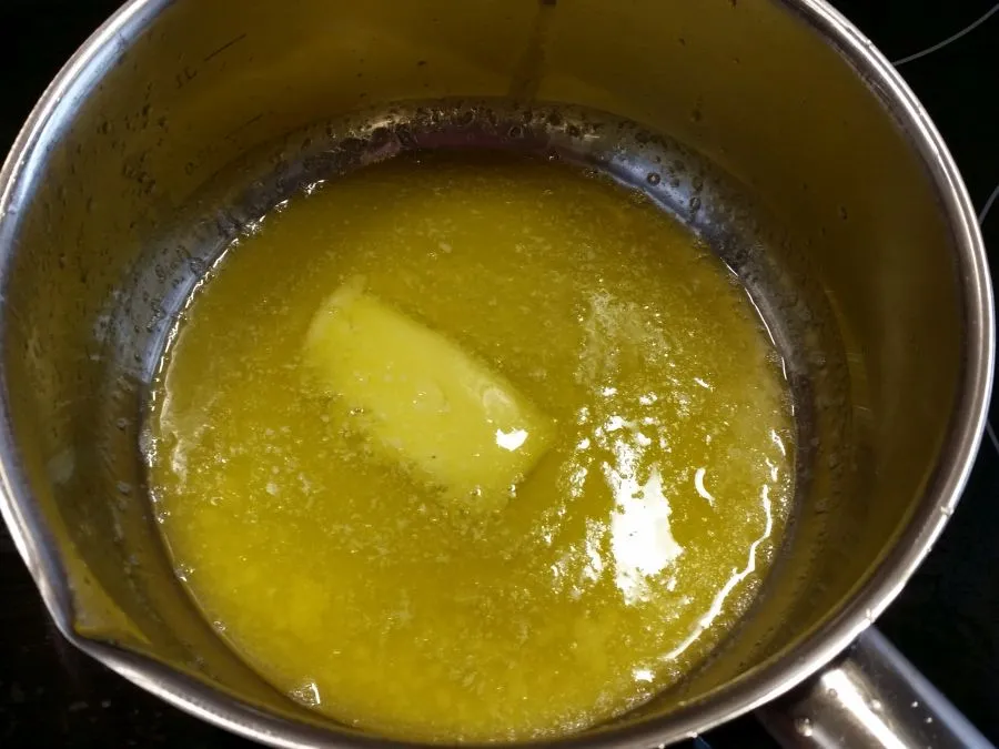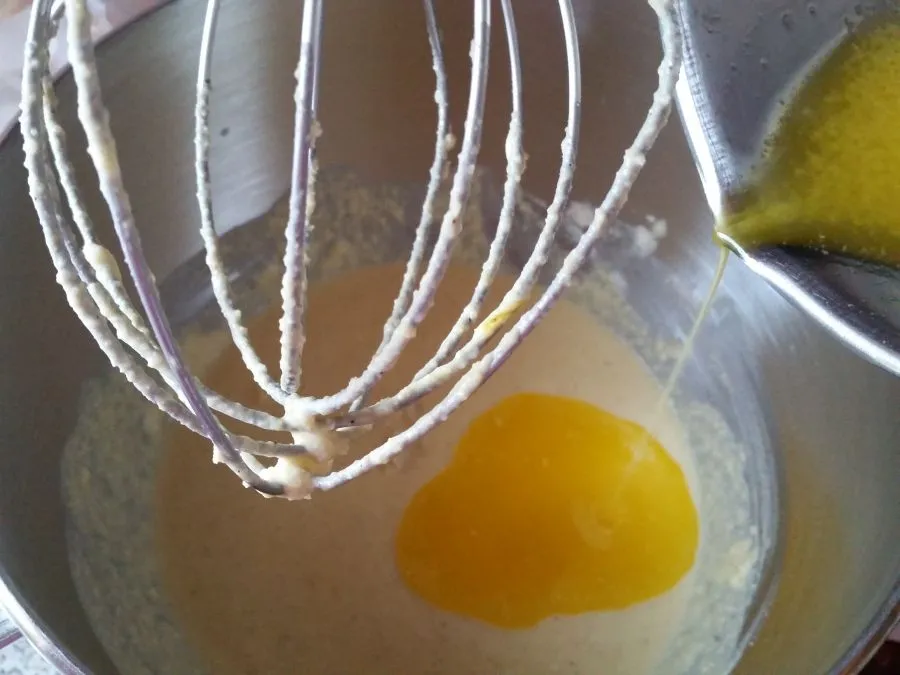• Die Butter schmelzen, zum Teig geben und gut verrühren.