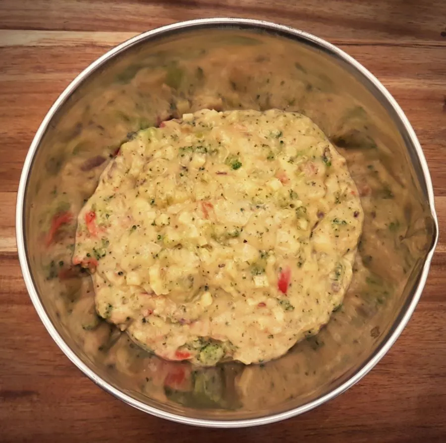 - Raclettekäse kleingewürfelt mit der Broccolimischung vermengen, Gewürze und Salz dazugeben, alles mit dem Waffelteig gut vermengen. Abschmecken!