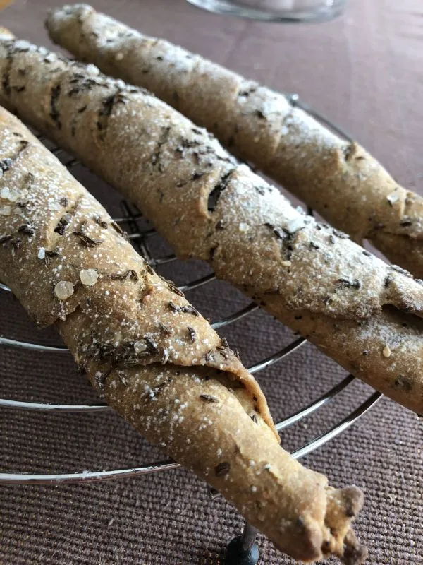• Bei 190 Grad Umluft 30 Minuten backen. Danach mit geschmolzener Butter gut bestreichen und sofort mit Kümmel und groben Meersalz bestreuen. Haftet so besser an den Stangerln. Nochmal 5 bis 10 Minuten backen. (Bei 6 Stangerl verkürzt sich die Backzeit um ca. 5 Minuten). Man kann die Temperatur am Ende auch etwas runterfahren und noch länger backen, dann werden sie knuspriger. Probierts einfach aus!