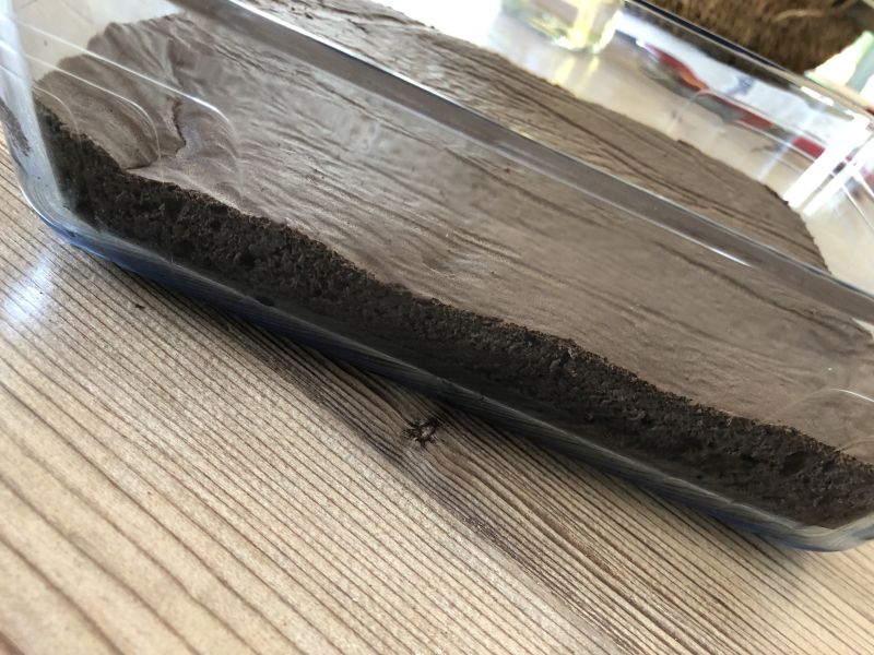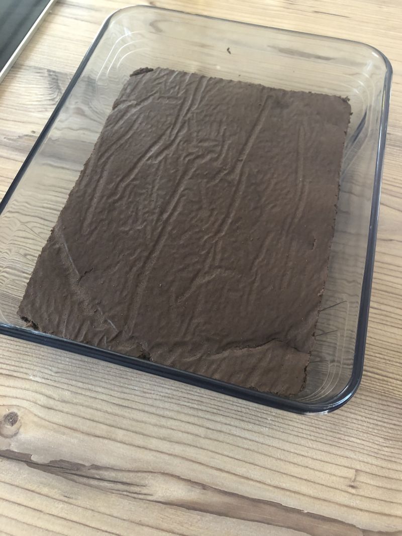 - Den abgekühlten Boden komplett in eine geeignete Form geben oder in einen Rahmen setzen. Mit gewünschter Flüssigkeit tränken.