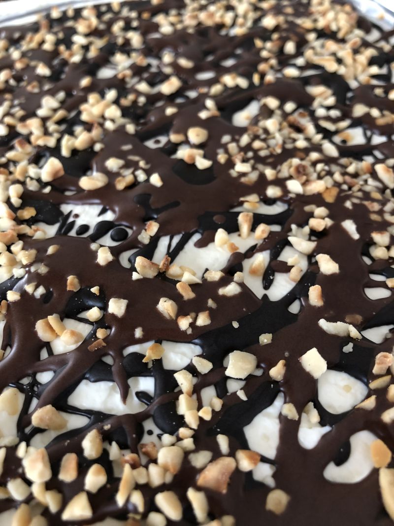 - Zur Deko geschmolzenen Schokoladenzauber und gehackte Nüsse drauf verteilen. Ich habe hier die beiden Sorten Schokoladenzauber "Vollmilch" und "Schwarze Sahne" gemischt - sieht einfach super hübsch aus und schmeckt super lecker!