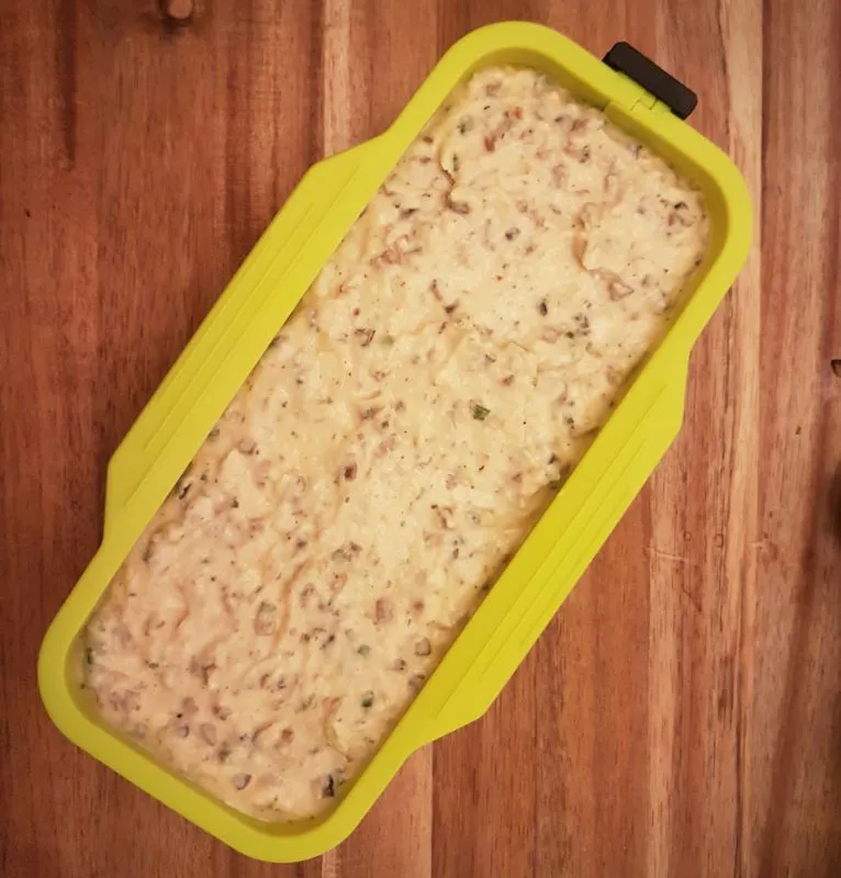 - Eier mit Sauerrahm, Milch, flüssiger Butter und Gewürzen glatt rühren, Bambusfaser und Kuchenzauber untermengen. 10 Minuten stehen lassen und dann die Champignonmischung und den Cheddar untermengen. In einer länglichen Backform 70 Minuten bei 170 Grad backen (Silikon eignet sich hierfür am Besten - Link siehe oben bei den Zutaten).