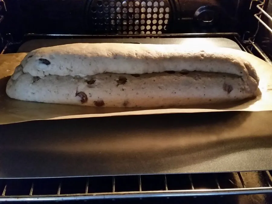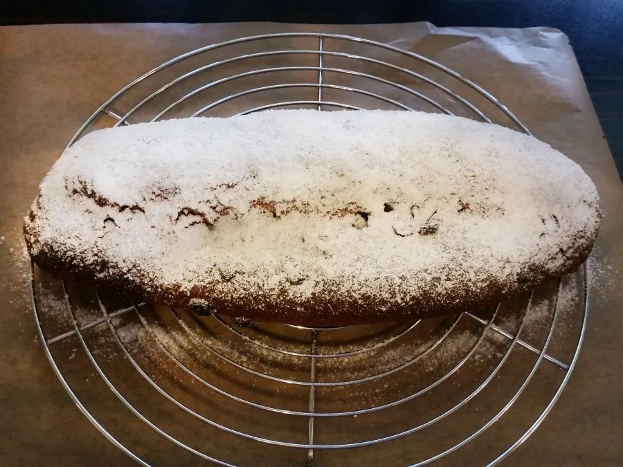 • Nach dem Backen sofort mit Erythritol-Puderzucker bestäuben und den Stollen auf einem Kuchengitter auskühlen lassen.