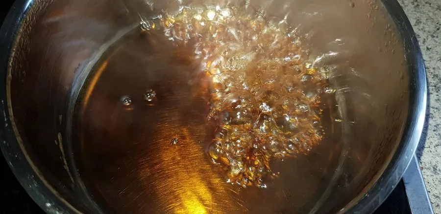 - Dann das Wasser hinzugeben (vorsicht: Verbrennungsgefahr durch starkes blubbern) und kurz unter Rühren aufkochen.