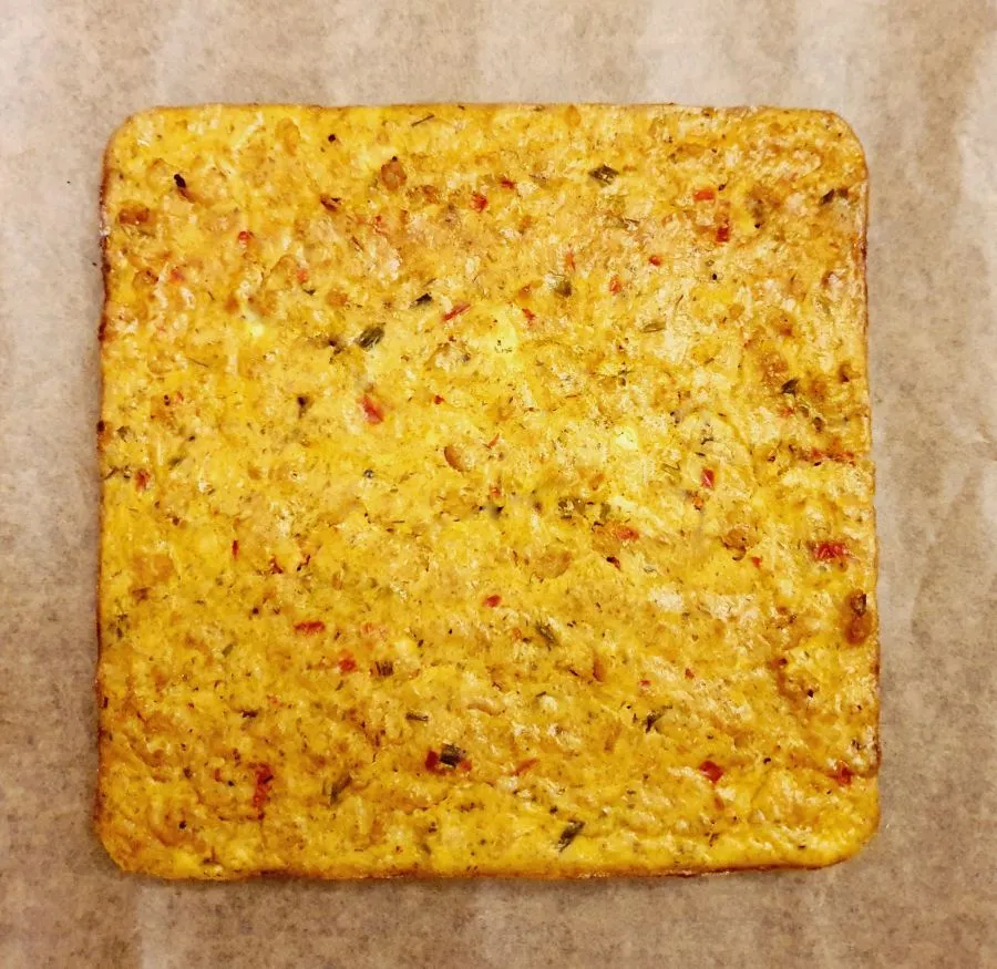 - Den Guss gleichmäßig verteilt über die Hähnchenmasse gießen und bei 170 Grad Umluft 30 Minuten für softeren Cake backen. Wer ihn etwas kompakter mag, 10 Minuten länger backen, schmeckt beides.