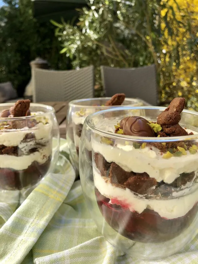Wie eine "Schwarzwälder" im Glas - sicher genau so gut! Tolles Dessert für das ganze Jahr - hier speziell dekoriert für Ostern! Ihr werdet begeistert sein!