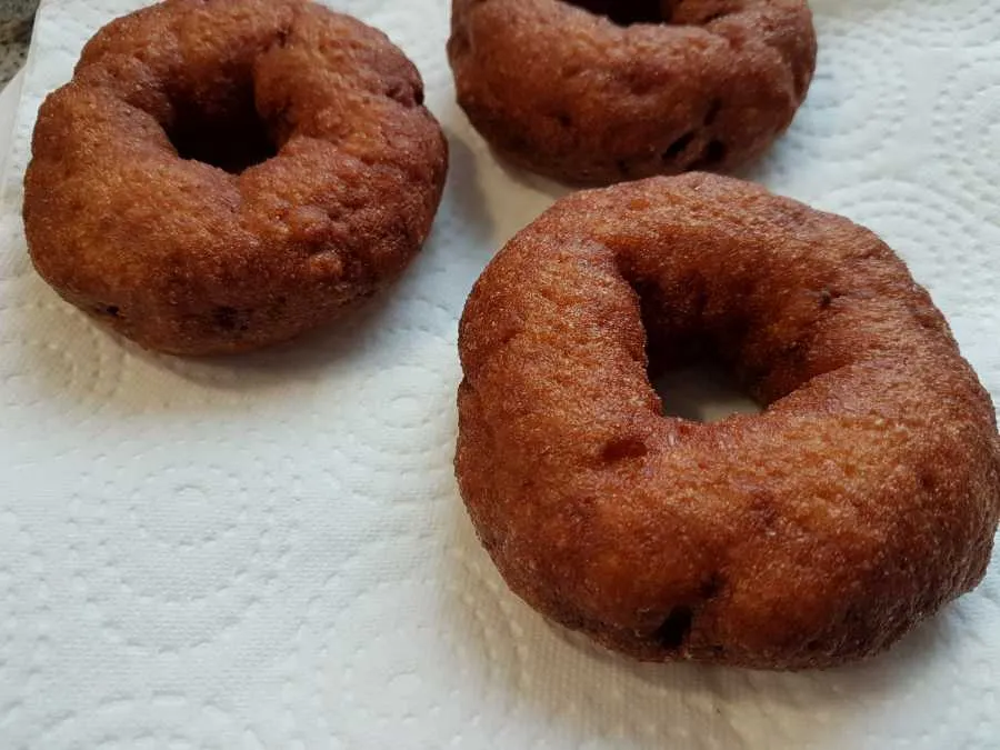 - Anschließend die Donuts mit Küchenpapier abtupfen und abkühlen lassen.