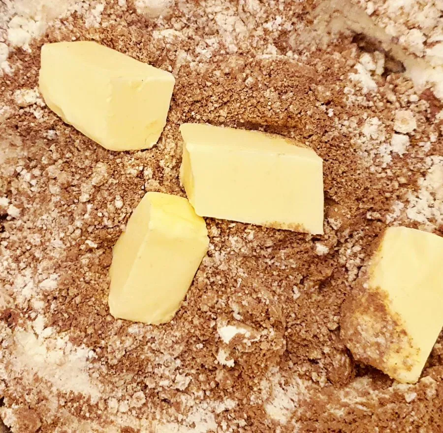 - Nach dem Schmelzen rühre ich mit einem Spatel alles gut durch und füge das Pure Flavour und den Abrieb der Orange dazu, und rühre nochmal gut durch. Dann langsam die Nuss/Keksmischung unterrühren.