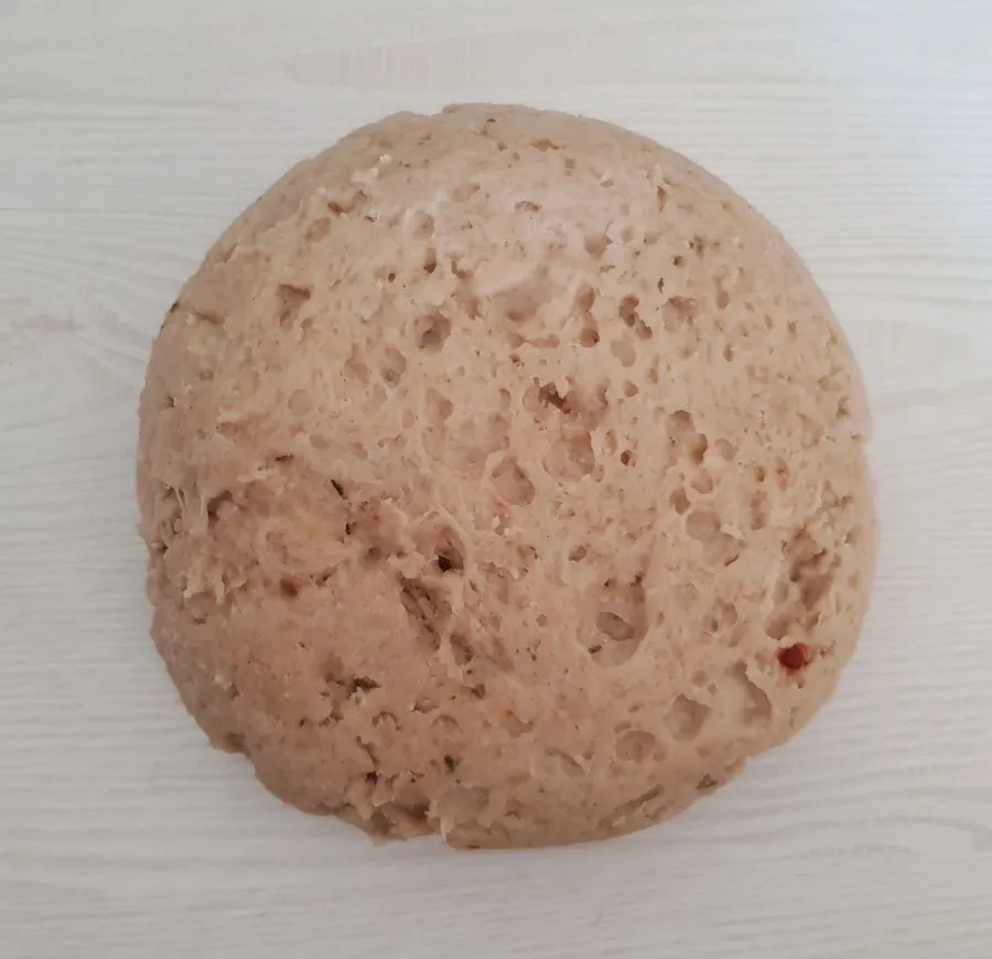 - Aus der Toastbrotmischung, Gewürzen, Salz und Wasser einen Teig zubereiten. Der Teig sollte unbedingt gewürzt werden, bitte nicht weglassen.