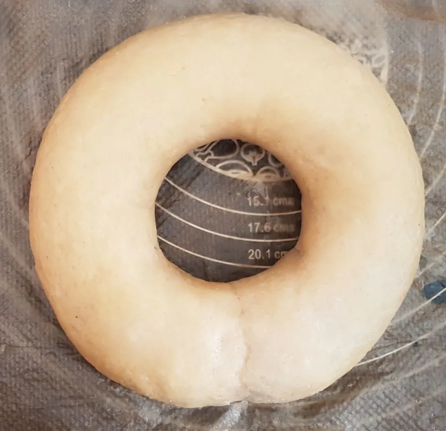 • Mit feuchten Fingern und dem beiseite gelegtem Teig den Kranz verschließen. Mit feuchten Fingern funktioniert das super. So kann man den Teig auch schön glätten.