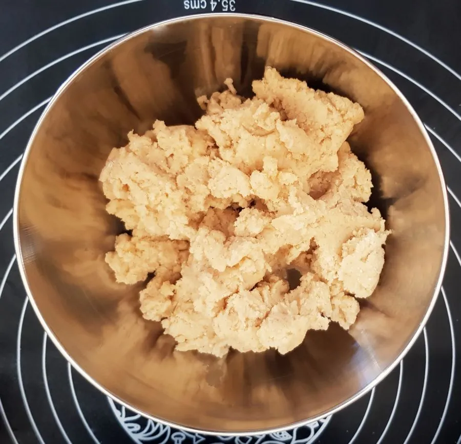 • Aus Mandelteig, weicher Butter, Eiern, Süße, Pure Flavour und Wasser einen Teig zubereiten. Zur Seite stellen.