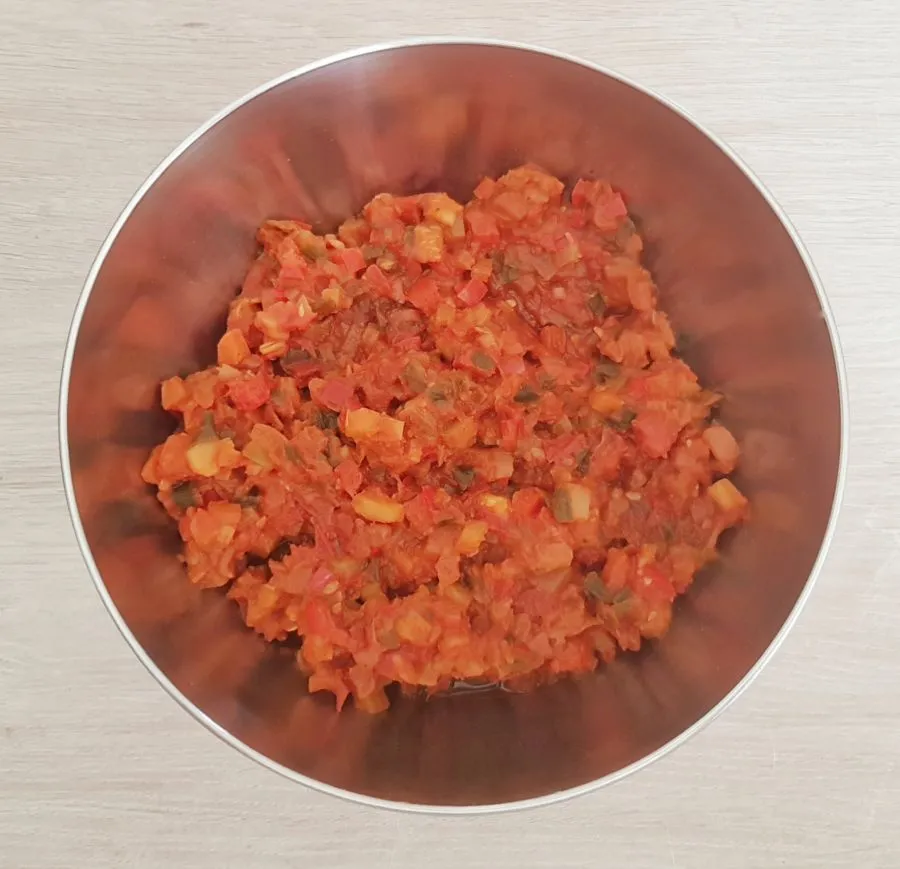 - Gemüse waschen und alles in kleine Würfel schneiden. Die Tomaten vierteln. Ghee und Karamelltraum in einer Pfanne zum schmelzen bringen, Gemüse hinzufügen und scharf anbraten. Tomatenmark und Gewürze untermengen, gut durchrühren, Temperatur etwas drosseln, Wasser hinzufügen und köcheln bis kaum mehr Flüssigkeit vorhanden ist. Zitrusfaser unterrühren und zur Seite stellen. Abschmecken ob Gewürz so passt.