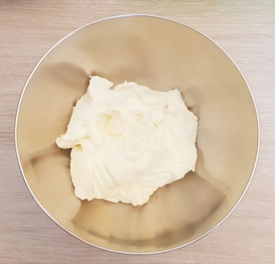 - Frischkäse, Ei und Gewürz sehr glatt miteinander verrühren. Zur Seite stellen.
