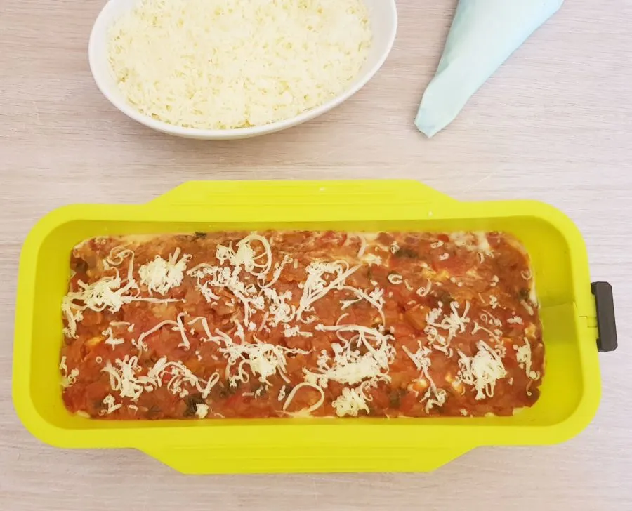 - Mit einer Nudelplatte beginnen, diese in die Backform legen, mit wenig Cheddar bestreuen, dann gleichmäßig die Frischkäsecreme verteilen (ich hab die Frischkäsecreme in einen Spritzsack ohne Tülle gefüllt - so ist es einfacher und wird gleichmäßiger). Anschließend das Gemüse gleichmäßig verteilen. Wieder mit etwas Käse bestreuen und mit einer Nudelplatte belegen. Das so lange wiederholen bis man bei der letzten Nudelplatte angekommen ist. Nach der letzten Nudelplatte nur mehr die restliche Frischkäsecreme gleichmäßig verteilen und mit dem Cheddar bestreuen. Alles 40 Minuten backen.