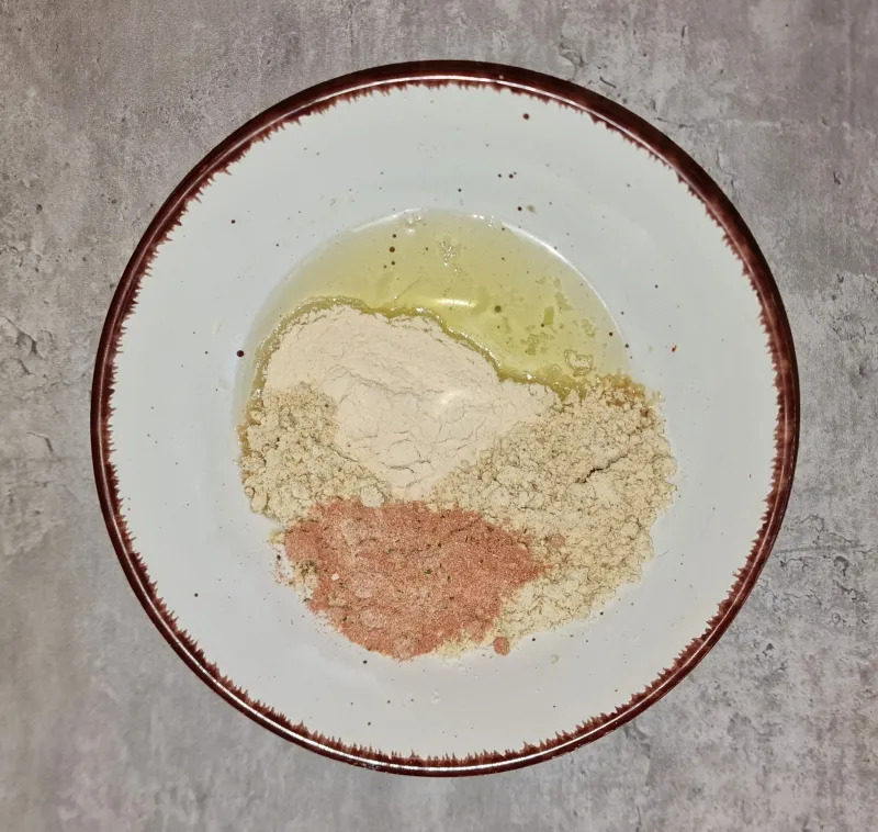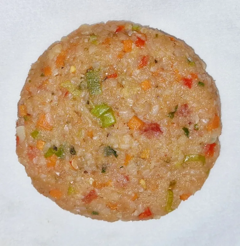 - Zuletzt den fein gehackten Knoblauch, die Gewürze und die Sojasauce hinzufügen und mit den Fingern (Handschuh) zu einer Masse verkneten. Es ist eine lockere Masse, die aber gut zusammen hält.